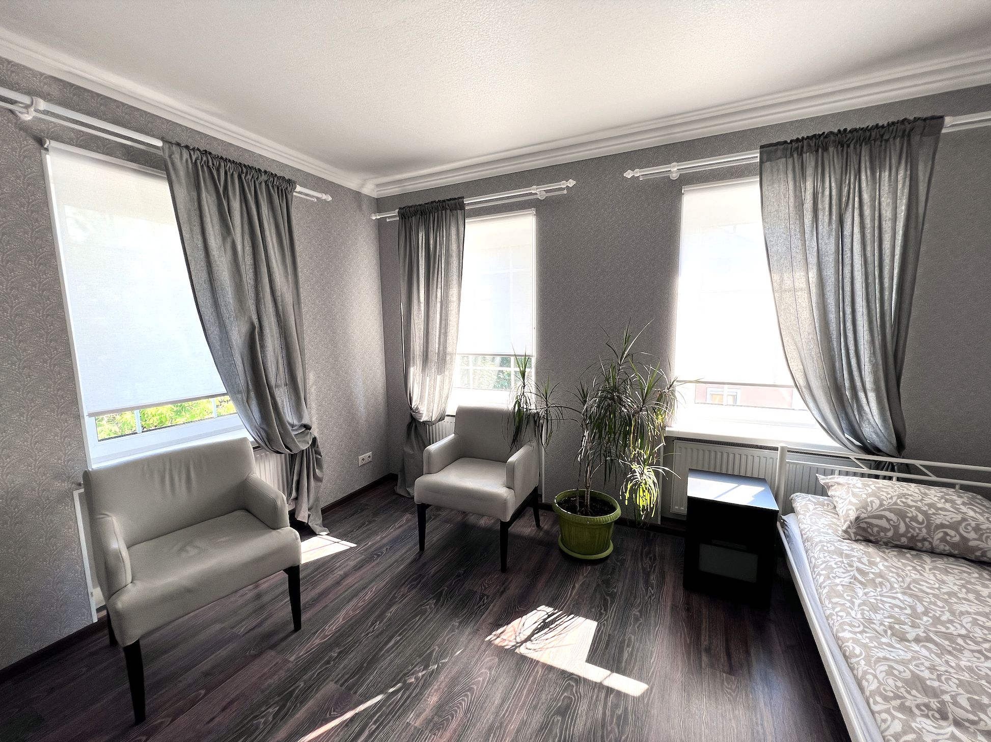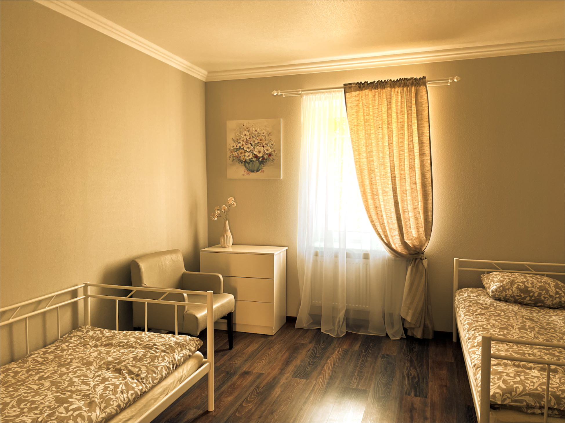 Дом сопровождаемого проживания расположен в 3-х этажном доме и имеет собственный парковый участок 30 соток. Он оборудован 2-х, 3-х, 4-х местными номерами (комнатами) для постоянного проживания 15 постояльцев.